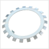 内径側には一枚の歯、外径側には多数の歯があり、歯を折り曲げて、ナットの緩みを防止します。