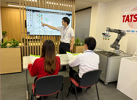 実際に協働ロボットに触って頂き、フローチャートプログラミングやダイレクトティーチングを操作して頂けます。