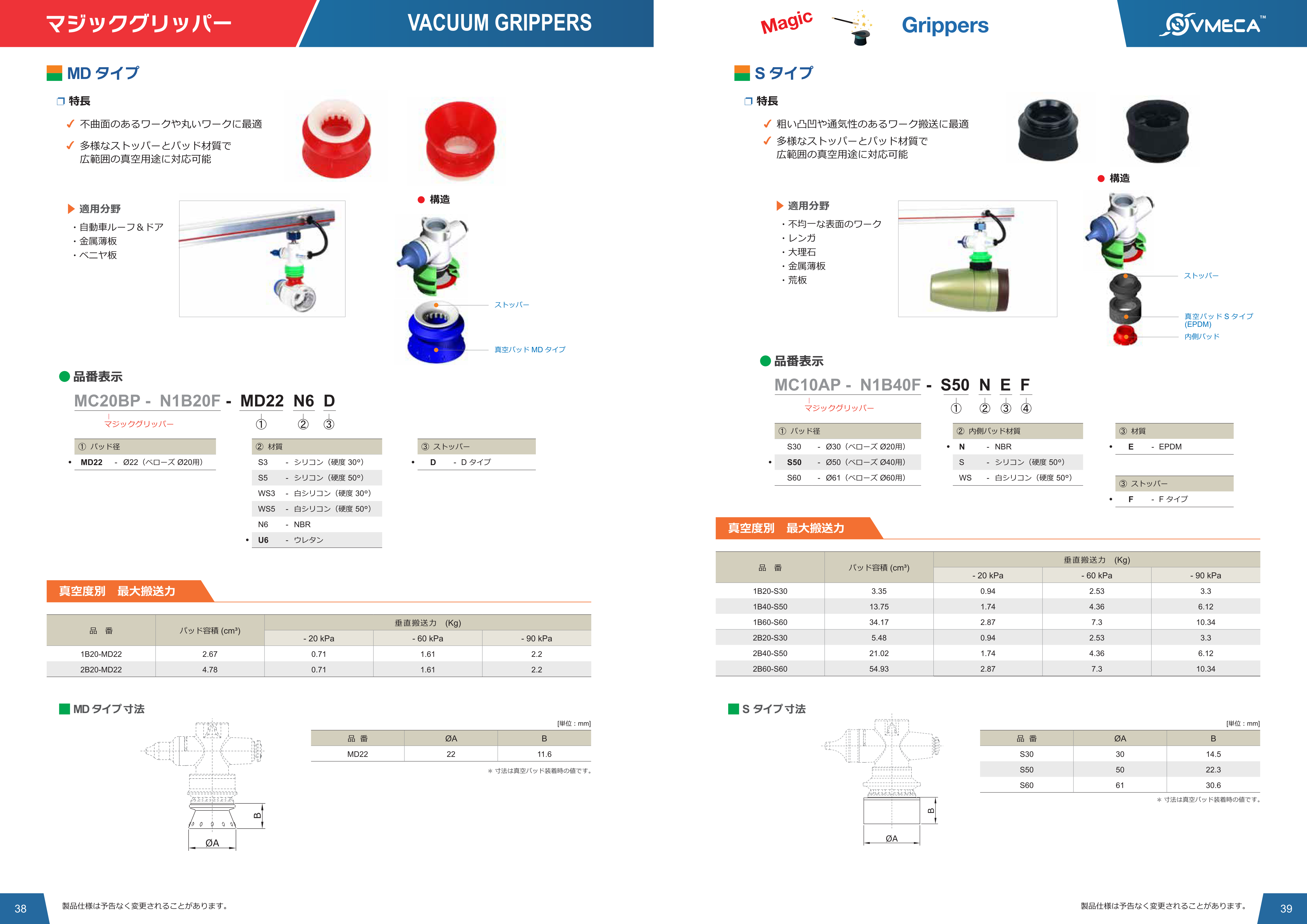 多様なストッパーとパッド材質で広範囲の真空用途に対応可能