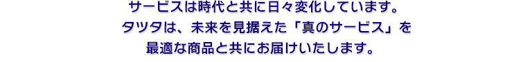 それは、日々の仕事の中でお客様が満足し信頼して頂けるタツタの基本となるさまざまな「魅力あるサービス」であると確信しています。